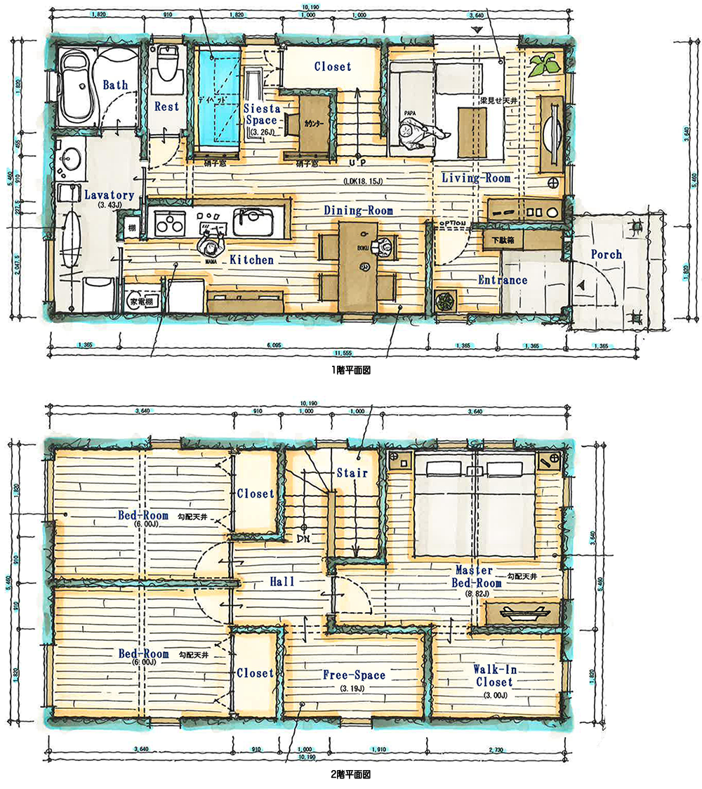 | 壁 | ビニールクロス(一部F&B自然塗料) (オプション:アユームの壁⦅塗り壁⦆ | |