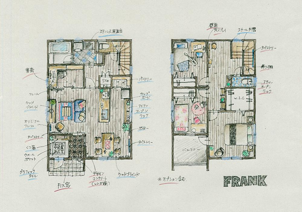 1階のウッドブラインド、全室照明器具、家具(玄関収納・カップボード・キッチン下のBOX類一式・ポスターなどの雑貨少々…etc) がセット価格で1,950万円から!