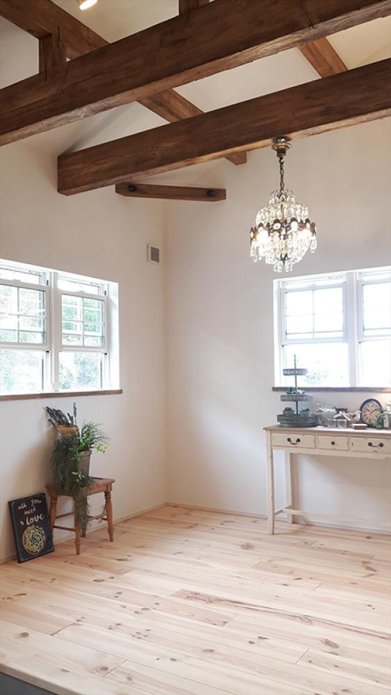 1階部分に7坪の店舗を繋げました。片流れの屋根形状を活かしてすべての梁を現し、Mamanの家の中に異空間が表現できました。