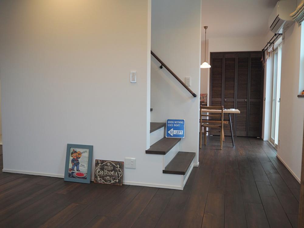 リビングとダイニングの間の階段はおうちの中心。