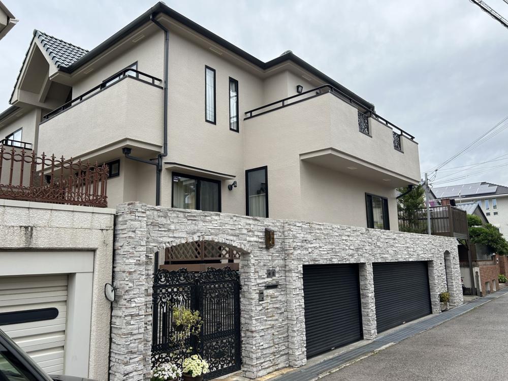 屋根と外壁を塗装、塀は高圧洗浄、ベランダは防水加工しました。