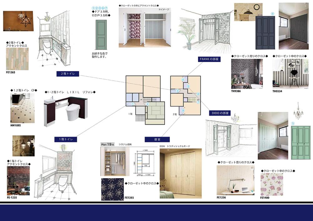 お子様が二人とも個室が欲しい年齢になられたので、広い子供部屋をクローゼットで2つに分け、女の子の部屋はDIDO風に、男の子の部屋はFRANK風に。