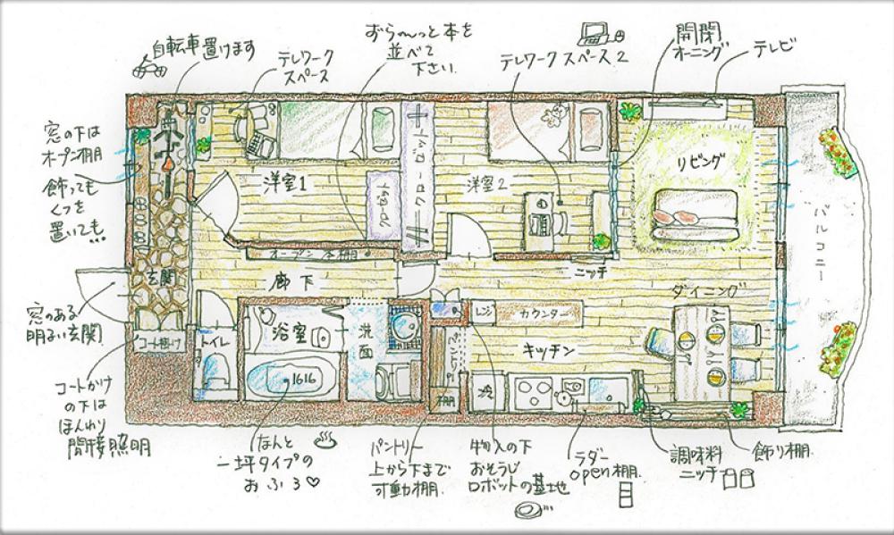 バルコニー側の二間続きの和室をなくし、広いLDKに。