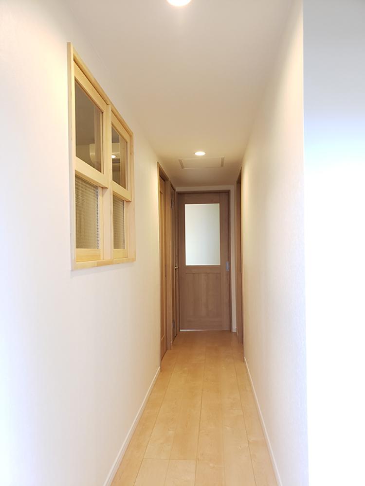 廊下に木製室内窓(引き上げ式)