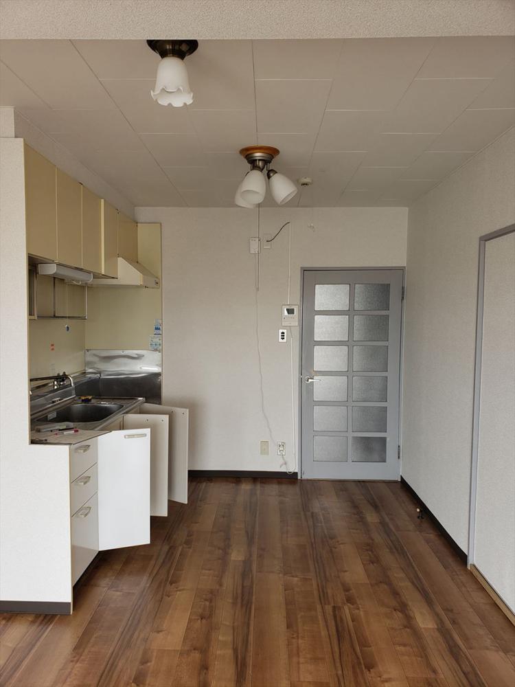 L型キッチンで収納たっぷり。 和室の畳をフローリングに!