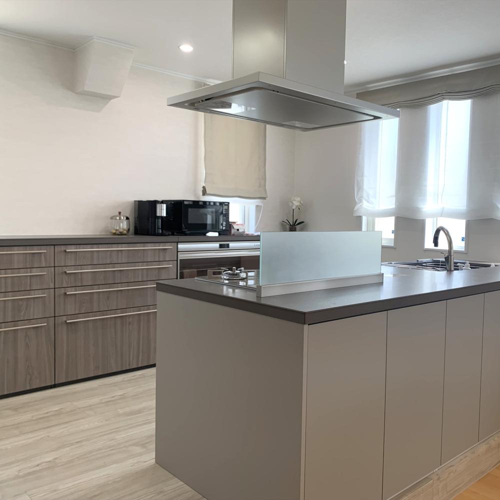 この度のリフォームで、キッチンの向きを90度変え、作業しやすい広々キッチンに生まれ変わりました。