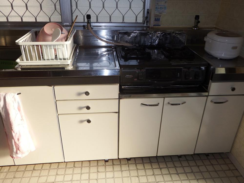 L型キッチンで収納たっぷり。 和室の畳をフローリングに!