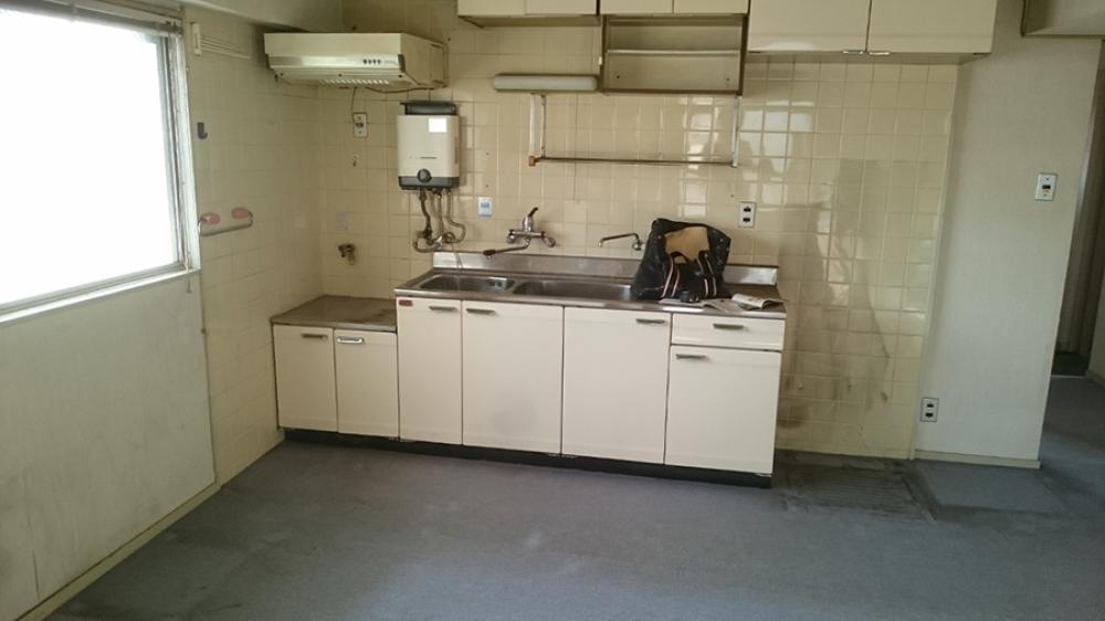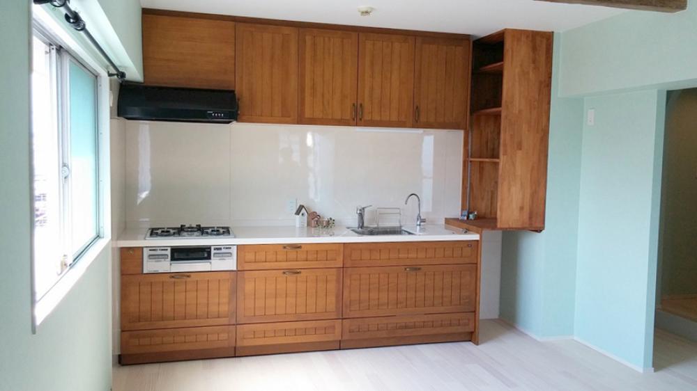 L型キッチンで収納たっぷり。 和室の畳をフローリングに!